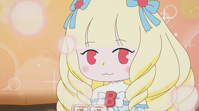 Berry is a beautiful young girl with blonde hair and pink eyes. She is a mysterious part-timer at Lucky Cat.