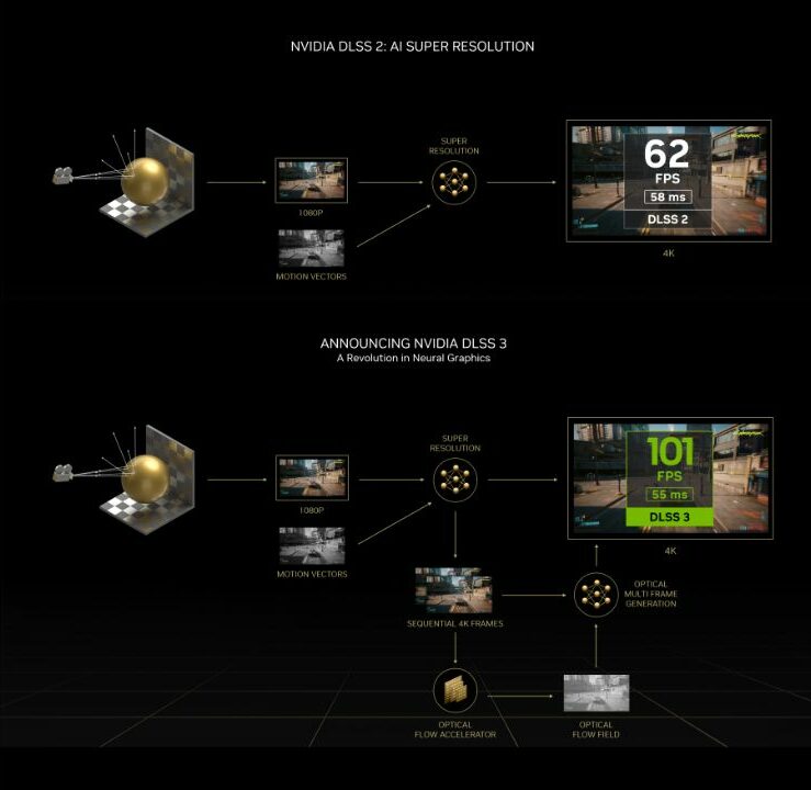 The DLSS 3 is the latest offering by Nvidia that uses an AI-powered performance multiplier that delivers outstanding image quality and up to 4X the performance of “brute force rendering” with reduced response times.