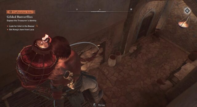 To start with finding out the identity of the Treasurer, activate your Eagle Vision when you enter the Bazaar to look for clues. Have a chat with the merchant named Kong, who will task you with stealing a plate from Luca. Head to the objective marker, where you’ll find a breakable wall.