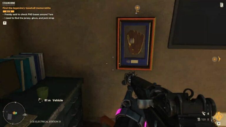 Players must collect three (3) baseball memorabilia items: a Glove in CCE Electrical Station 31, a Jersey in FND Special Forces Base, and a Jockstrap in Espinosa University, then return all of them back to the shrine in Feroza town to complete the Stealing Home side quest in Far Cry 6.