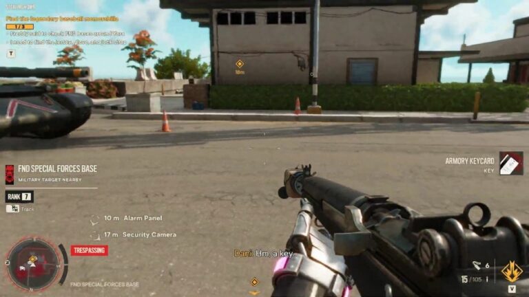 The baseball jersey is located in the third building on the right side from the base’s main entrance, but the building is locked, and you need a keycard for it. Like before, kill the guards stealthily and acquire the keycard from the leader’s body.