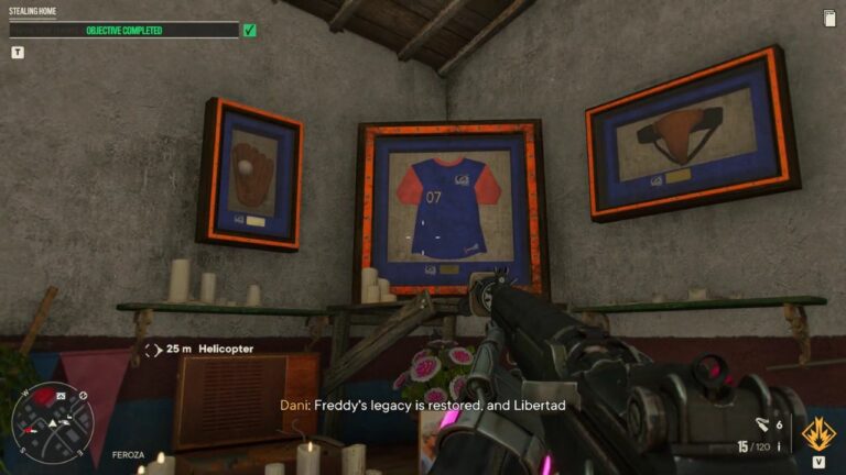Stealing Home is a Yaran Story side quest in the Valle De Oro region in Far Cry 6. This quest is given to Dani by a baseball player NPC called Freddy Fonseca Jr. He tasks the players to bring his father’s baseball gears/memorabilia back that were stolen from his shrine by the army.
