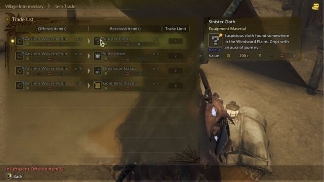 Sinister Cloth is a unique material item in Monster Hunter Wilds. It isn’t easy to find by regular methods in the fantasy world, but if you are planning to get a few cool items and an armor set, then you better set out to acquire some of it. Finding it does not involve mindless mining or chest opening, but you do need to have some Ancient Wyvern Coins on you when needed!