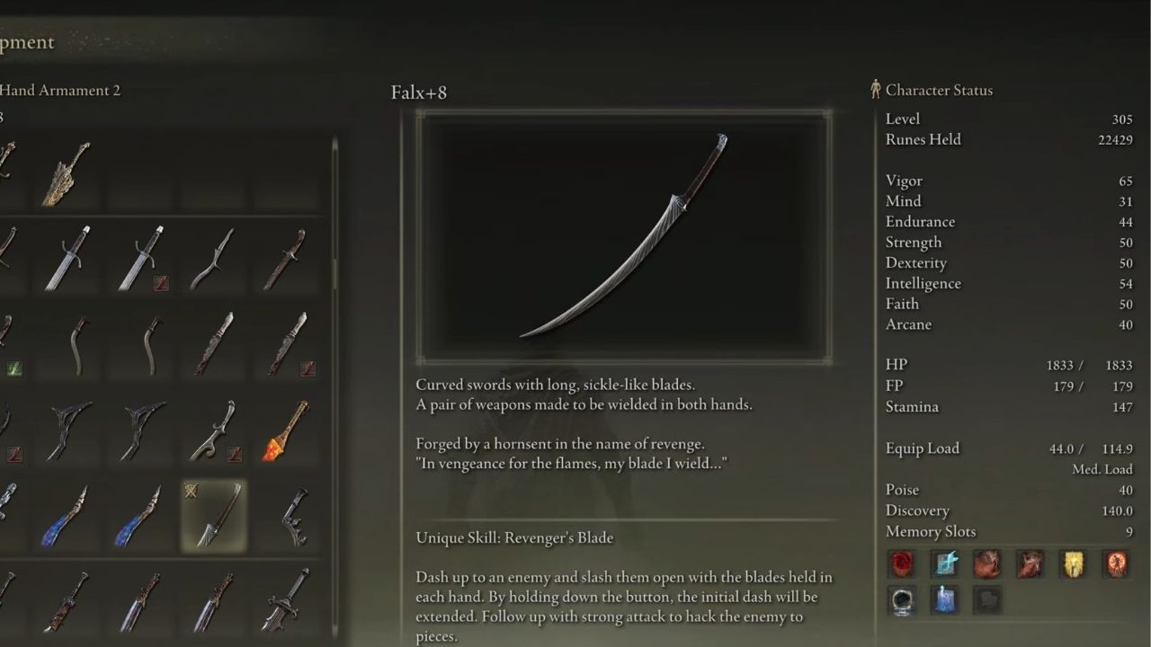 The Shadow of Erdtree DLC introduces various new items and weapons in the game including the Falx curved swords, a set of dual-wielding and rather dull-looking swords.